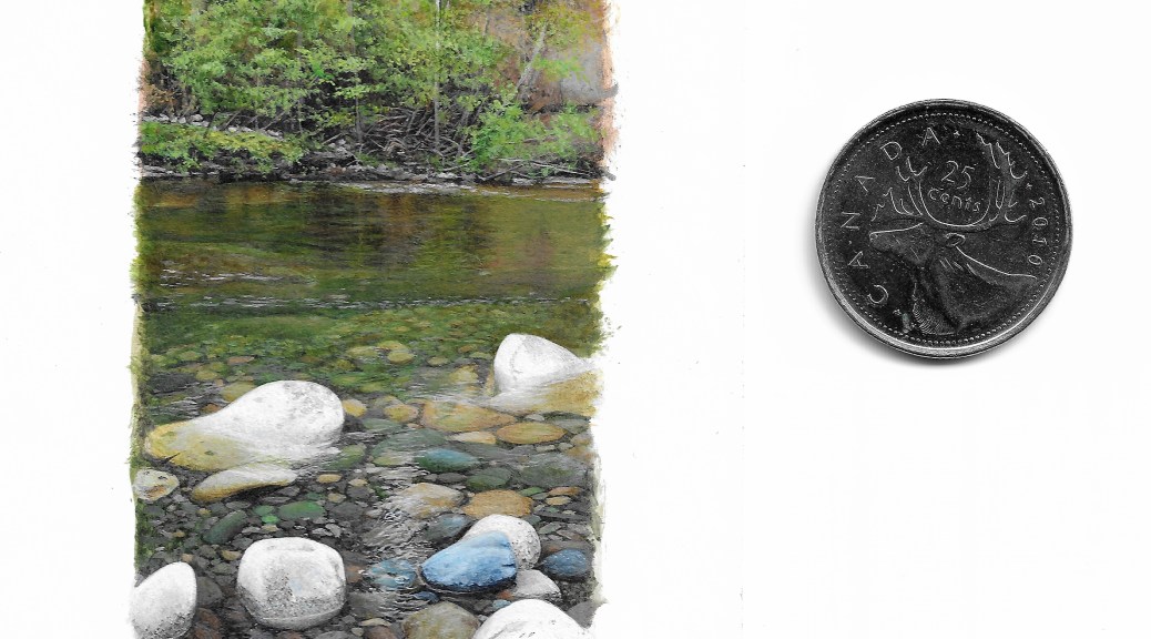 These two miniature paintings are from the Englishman River area near Parksville BC, a terrific spot for a cool break on a hot day, or a hike in the woods. I’ve been working through a series of paintings featuring this lovely area, and “Englishman River” is a very similar sister painting to one I did in January.