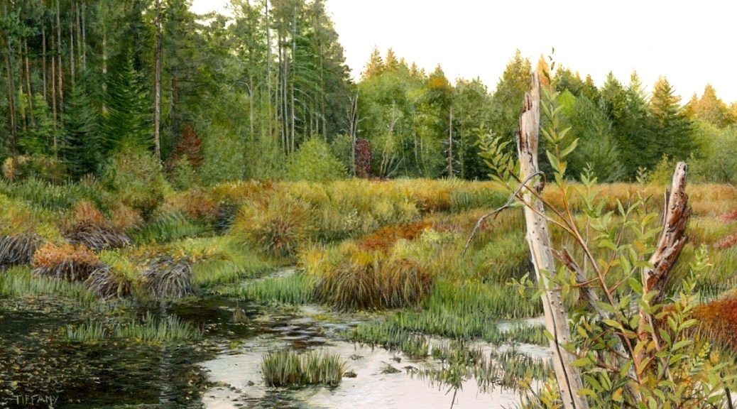 Unexpected inspiration for the above painting came as I was on my way to somewhere else and I now stop to visit this little marshland whenever I pass by. Onward to new autumn adventures!