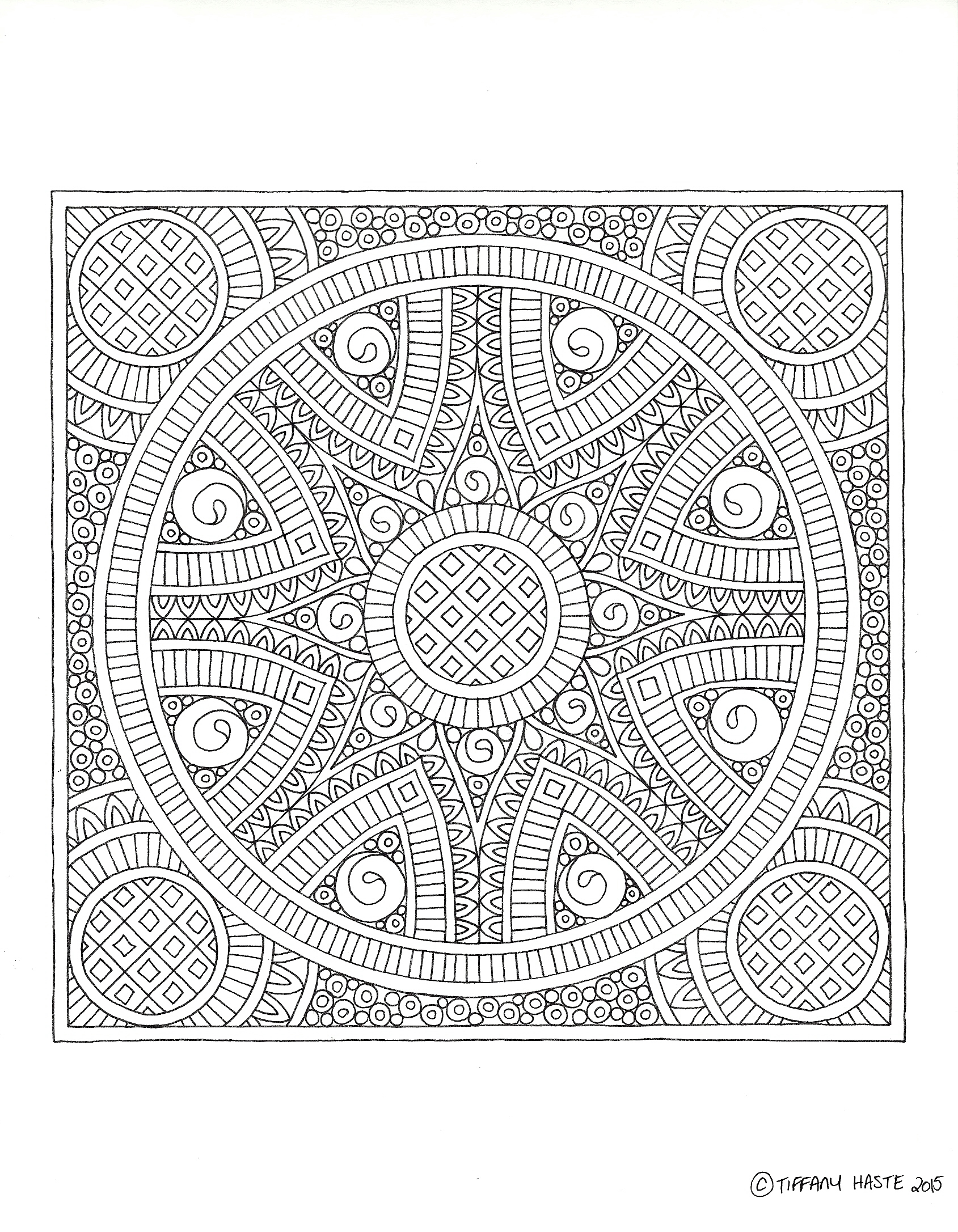 Red Tile Mandala Line Drawing
