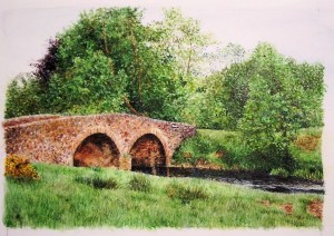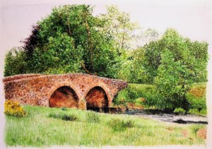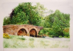 Many years ago I did a class project with my painting students, rendering the same image in both watercolor and in acrylic. The purpose was to help folks learn to paint in miniature with their chosen medium, but I think that I learned the most from the experience; mainly that I am an acrylic painter at heart. That said, painting with watercolor was a terrific exercise and I have a deep respect for my fellow artists who work with watercolors. For those who are interested, here is a quick progression of steps for that learning project: