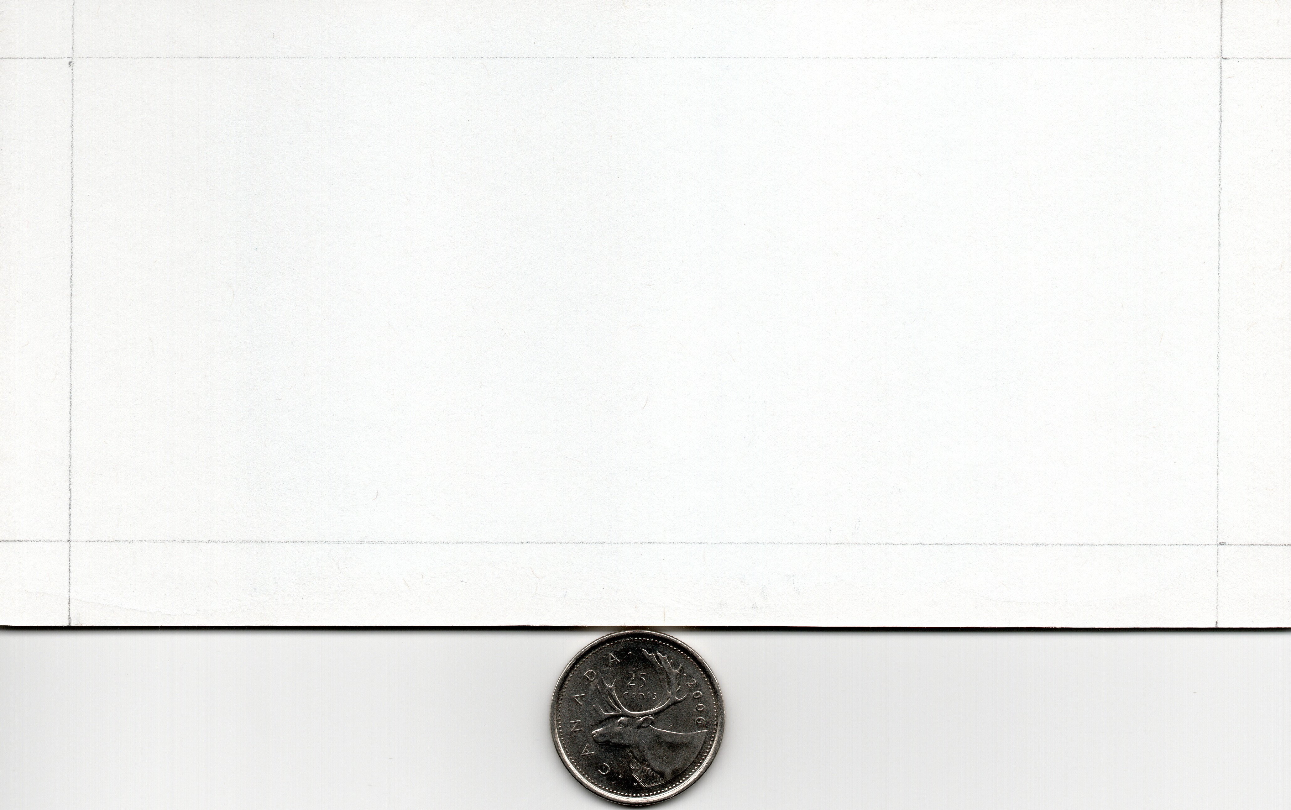 “Spring Meadow” (1.75 x 4.25 inches), acrylic on art board, with coin for scale.